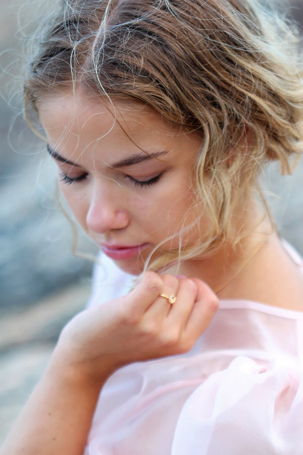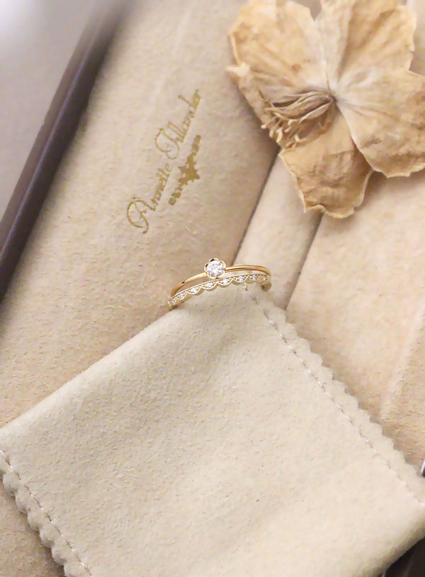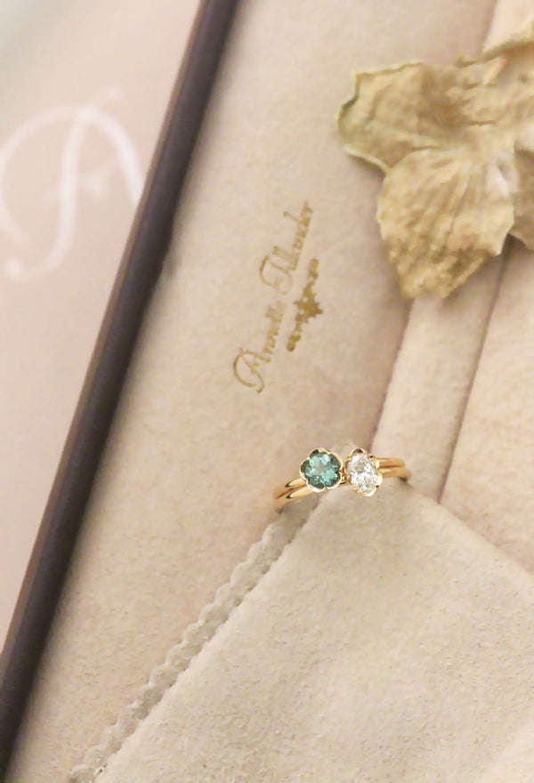 Hempeä kukkamainen reuna reunustaa timantin tai värillisen jalokiven, luoden herkän ja elegantin kokonaisuuden. Kaunis yksinään, mutta sopii myös yhdistettäväksi muiden sormuksien kanssa. Thora Flower sormus saatavana luonnontimantilla sekä LAB-synteettisillä timantilla, sekä Thora Flower Fancy sormukseen voi valita ihanan värillisen jalokiven.