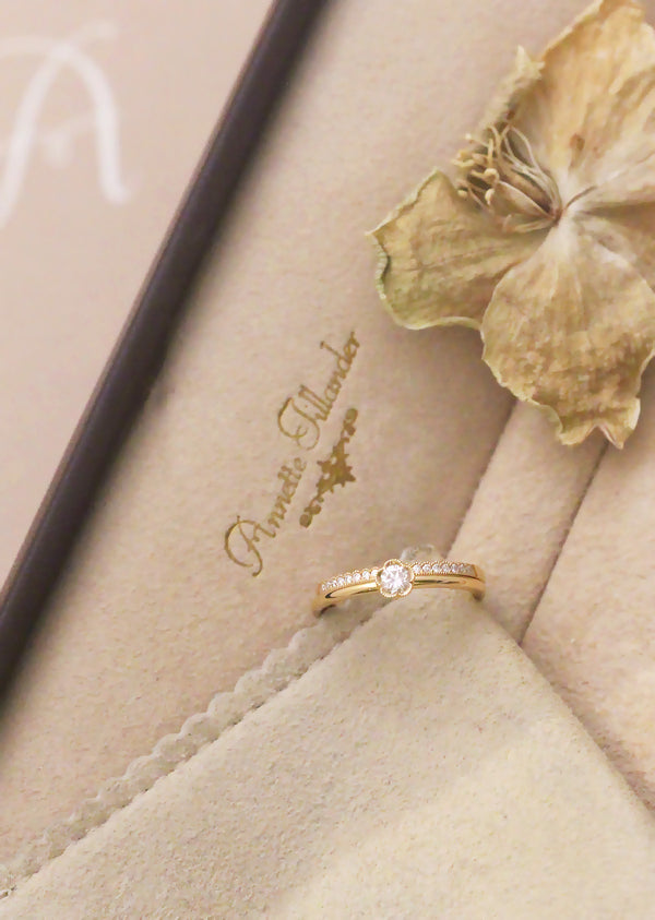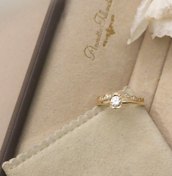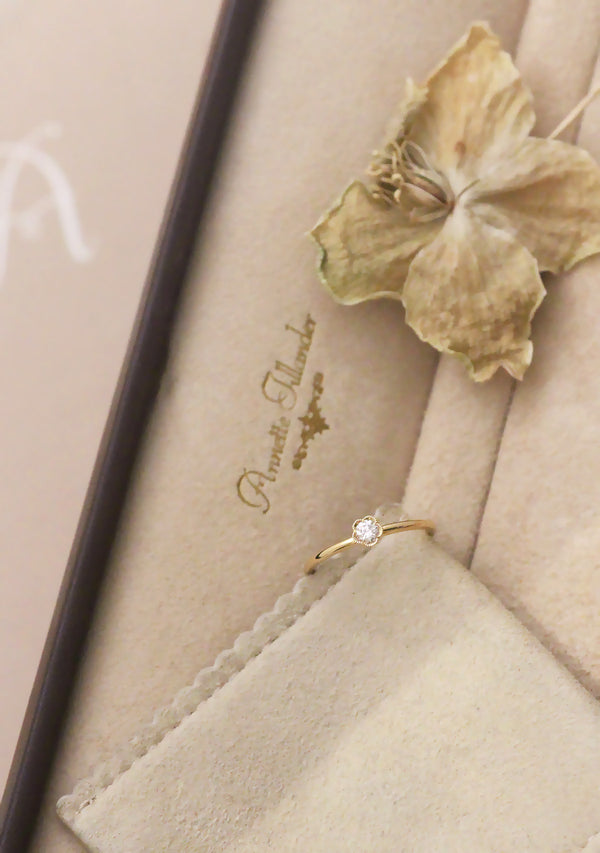 Herkän romanttinen yksikivinen sormus, jossa taidokkaasti käsintehty kukkamainen reuna tuo tunnistettavan ja ainutlaatuisen Annette Tillander -yksityiskohdan.