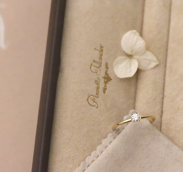 Paola Flower – herkän romanttinen yksikivinen sormus, jossa taidokkaasti käsintehty kukkamainen istutus tuo tunnistettavan ja ainutlaatuisen Annette Tillander -yksityiskohdan.